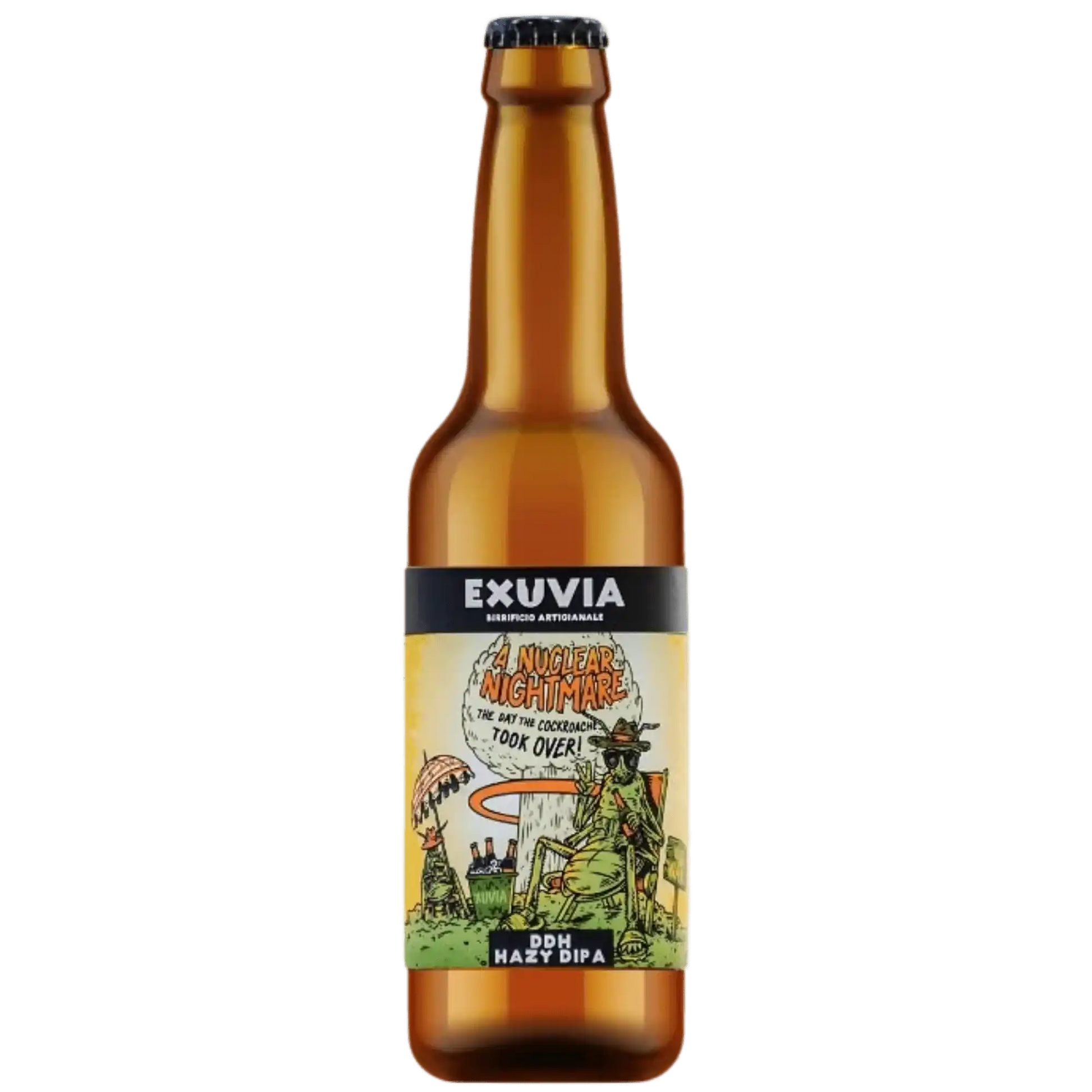 A Nuclear Nightmare. Il birrificio la definisce "Hazy DDH Double IPA", tutto chiaro no? Spieghiamo meglio cosa intende, scomponendo il nome dello stile in senso contrario:- IPA sai cosa vuol dire di sicuro... E se non lo sai, aspettati una birra molto profumata;- Double significa che il grado alcolico è più alto del normale, siamo infatti già a 8% ABV;- DDH sta per Double Dry Hopping, che, senza spiegarti tutte le reazioni chimiche, consiste nell'aggiungere una buona quantità di luppolo nel fermentatore contemporaneamente (o quasi) all'inoculo del lievito. Si fa per ottenere una birra dagli aromi luppolati ancor più esplosivi;- che è Hazy te ne accorgerai appena la verserai nella tua pinta!
